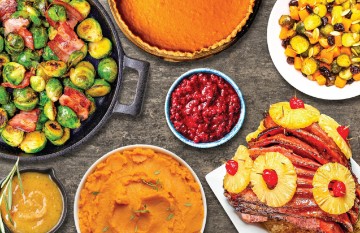 Complete With All The Fixings Fully Cooked Sweet Glazed Spiral Ham 2 Lb Butternut Squash With Dried Cranberries 2 Lb Brussel Sprouts With Bacon 2 Lb Mashed Sweet Potatoes 1 Lb Cranberry Mandarin Relish 16 Oz Gravy Pick Your Pie Flavor (One Choice) 8 In Pumpkin Pie 8 In Apple Pie Heating Instructions Included, Sold Cold.