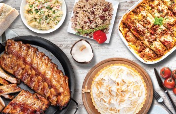 <p>Roasted Pork Ribs -5Lb -Half Tray<br> Rice With Gandules Or Moro Rice Half Tray<br> Half Tray (2.5 Lb) Lasagna Or Baked Ziti<br> Half Tray Macaroni Or Potato Salad</p> <p>Pick Your Pie Flavor (One Choice)<br> Apple, Coconut, Pumpkin (8 Inch Pie).<br> Heating Instructions Included, Sold Cold.</p>