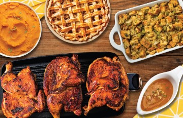 Complete With All The Fixings 3 Fully Cooked Rotisserie Chickens 2 Lb Stuffing 2 Lb Mashed Potatoes 16 Oz Gravy Pick Your Pie Flavor (One Choice) 8 In Pumpkin Pie 8 In Apple Pie Heating Instructions Included, Sold Cold.